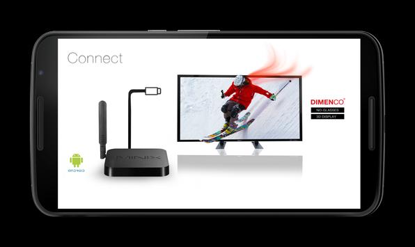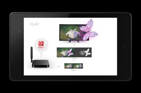 The Dimenco 3D Player for Android is an application developed by Dimenco, to play 3D video clips on a Dimenco autostereoscopic (no-glasses 3D) display. The 3D file formats that can be played (depending on the firmware in the display) are 2D Depth and stereo (top/bottom or side-by-side). The file naming convention for the display to recognise what type of content is coming in is as follows: