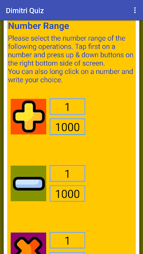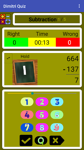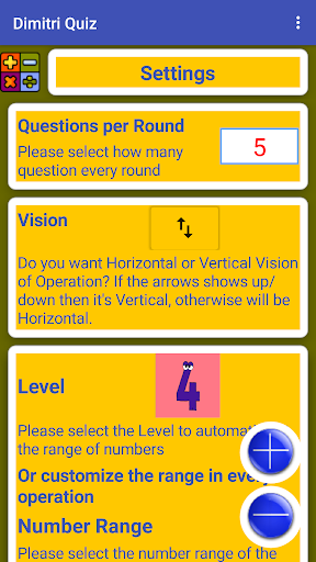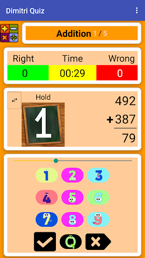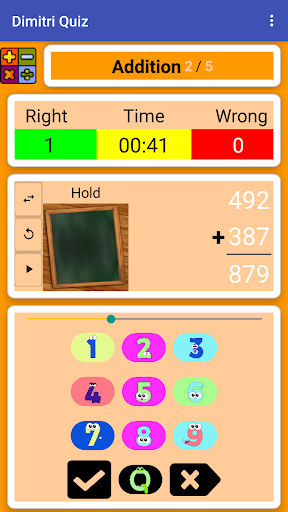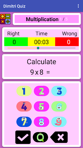 A Quiz for Elementary students, with the 4 basic operations of math in a beautiful environment, attractive to children, with no ads. It offers full customization in the choice of number range for each operation in order to suit every age and level of education.