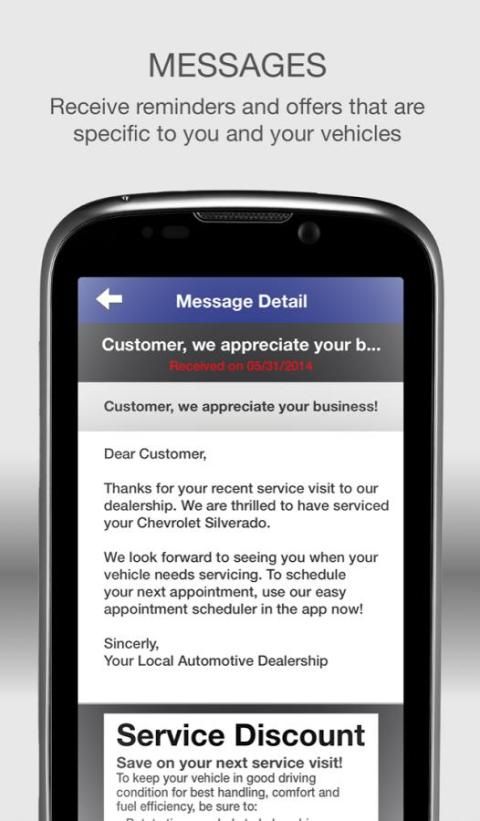 Make your vehicle ownership experience easy with the free Dimmitt Chevrolet mobile app. This feature-rich app allows you to get the most out of your vehicle by helping you to maintain and organize essential car details like service history, as well as save money with mobile offers and coupons!
