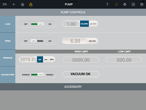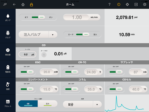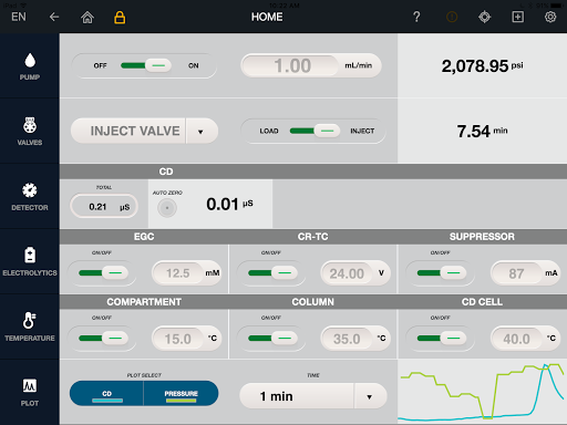 This App allows you to directly and securely control your Thermo Scientific™ Dionex™ Integrion™ HPIC™ system, view the current status of parameters, display a real-time plot of signal data, and offer access to the Integrion manual.