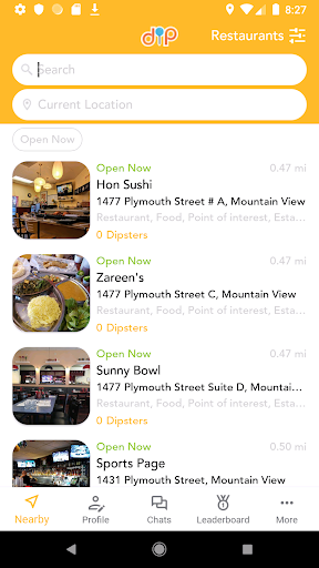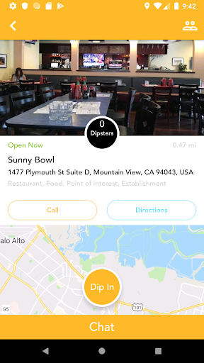 Dip Social App is comprised of hundreds of thousands of chat rooms, all linked to a business by GPS, providing you real-time, live, unfiltered information. Discover nearby restaurants, bars, bakeries, food and desserts, night clubs, concerts, events,