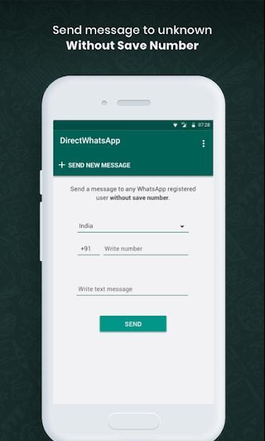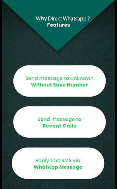 Direct WhatsApp is a boon that seamlessly lets you send a WhatsApp message to any unknown number without the need to save it. Our advanced features even lets you choose the number / contact from your recent call history and sms logs, all without never leaving the app.