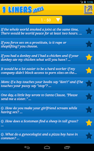 There are hundreds of new apps released every week, 10,000+ users downloaded Dirty One Liner Jokes latest version on 9Apps for free every week! The app is superior that can be used with any of the mobile type. This hot app was released on 2015-02-10. Don’t wait any longer– the application will shock you.
