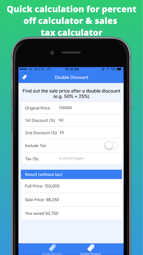 🔸 Quick calculation for percent off calculator & sales tax calculator.