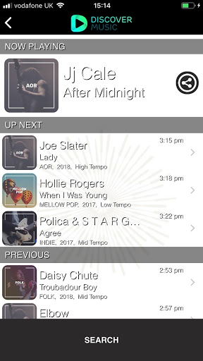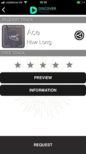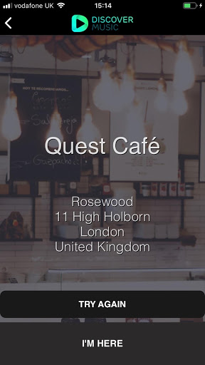 Discover Music allows you to interact with the background music player in supported venues. It shows what’s currently playing and allows you to request music within the confines of the timetabled playlists allowed by the venue.