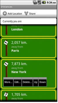 Distances for Android is a simple application that uses your current location to determine how far you are from certain points of interest.
