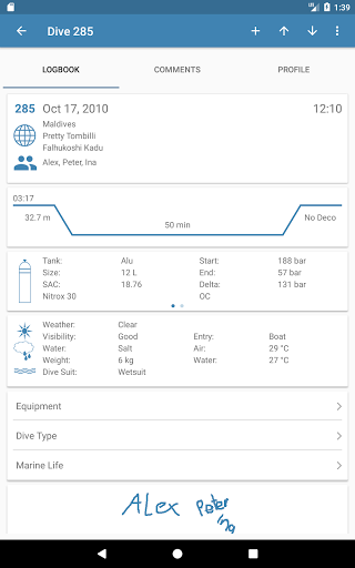 If you are a scuba diver and want to have your logbook always with you, then Diving Log is the right scuba dive log app for you. You can leave your handwritten paper logbook safely at home and still access all your dives.