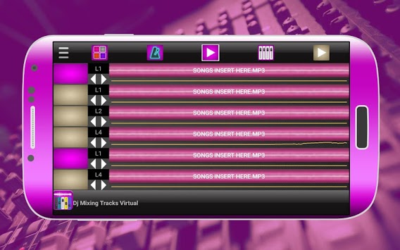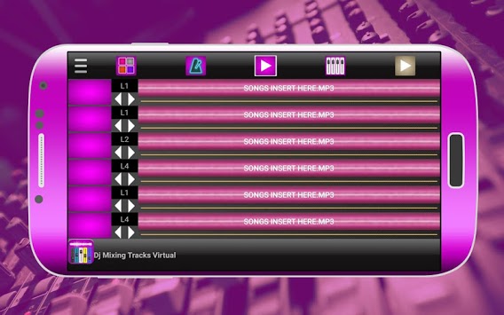 Dj Mixing Tracks Virtual, This application has 2 main functions loop function where you can combine half dozen tracks Loops and each track pad has 10 totally different sounds of Dance Disco Music, It contains a total of sixty loops where you can build lots of combos.