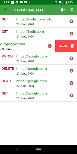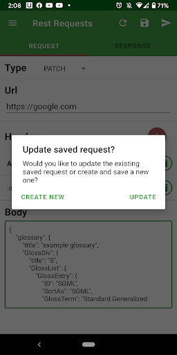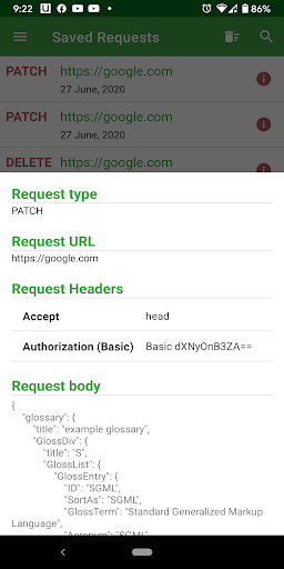 * Saved requests : If you realllly can't resist sending that one request every day, just hit that "Save" aka Floppy icon and all your request data will be saved for you in the list of Saved requests. After you tap a saved request, if you try to save it again, you can choose to update that request as well!