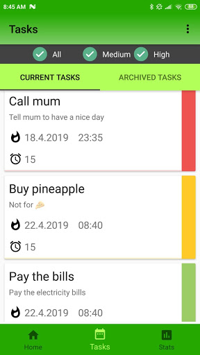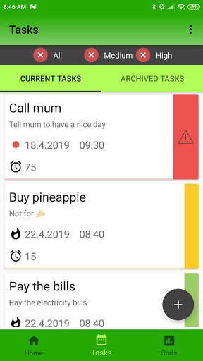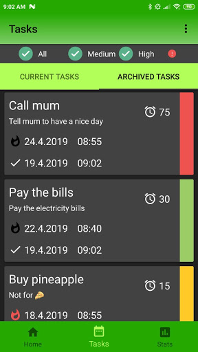 You enter time range when you are productive every day, then you enter the tasks you need to do by a certain date. The application will constantly calculate the ideal procedure for filling, or what to omit to make important tasks in time. Each task has its priority and its importance and performance is determined accordingly. At the same time, you enter the approximate time required for each task, but if the real duration is different from the expected one - nothing happens, the application recalculates what to do. As a bonus for each task, you gain experience that motivates you to accomplish your tasks as much as possible - and what's more, you can see your progress in the statistics.