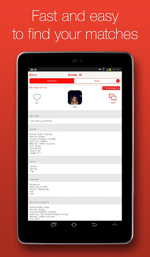Our Online Dating App is a great place for flirting, chatting, local dating, and hookups. In just a few simple clicks you can start a new relationship, meet real people or find your love. Want to know "Who meet me?". Don't miss your chance to find your match today.