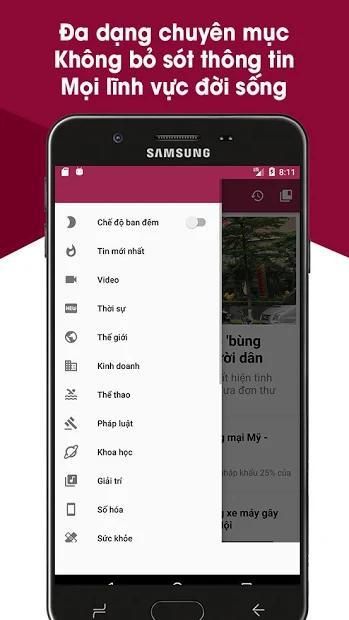- Đa dạng danh mục tin tức (tin mới nhất, tin nhanh, thời sự, thể thao, trong nước, quốc tế, xã hội, giáo dục, khoa học, đời sống, giải trí, pháp luật đời sống, an ninh, ...)