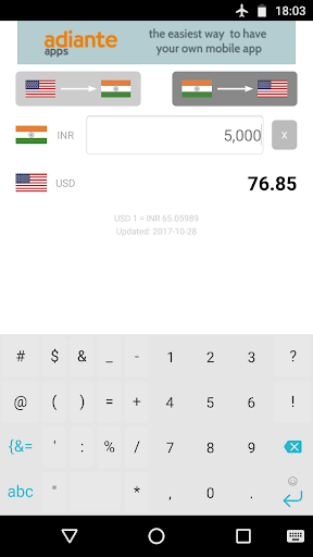 The fastest and easiest converter from US Dollar (USD) to Indian Rupee (INR) and from Indian Rupee to US Dollar.