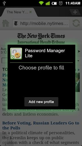 An absolute must have Addon for the Dolphin browser And free. It seems to work for most sites flawlessly.Save your passwords to login quickly without tedious manual input. Dolphin Password Manager Lite supports security saving up to 3 accounts and passwords.Dolphin Password Manager Lite for is an exclusive Addon for Dolphin BrowserFormerly Dolphin Browser HD. Just search Dolphin Browser in Android Market or download here: http:bit.lyDAndroidWhat is an Addon?Beef up your Dolphin BrowserFormerly Dolphin Browser HD by installing your favorite Addons. Similar to a desktop Plugin, each Addon will provides additional functionality on mobile device. Forgot password? Password Manager can help. Want a new look for your Dolphin? Download Shiny Shake to change colors. Want to read a webpage in French? Get Dolphin Translate. Click here to learn more: http:bit.lyAndroidAddonListThe Fine Print:Check out our full version for unlimited password accounts.Other popular Dolphin Addons:bookmark to SD Dolphin YouTube Searchpdf viewer for Dolphin Web to PDF Dolphin Google ServicesJoin the Dolphin communityFacebook: http:www.facebook.comDolphinFans Twitter: https:twitter.comDolphinBrowserAny further suggestions, please contact at support@dolphinbrowser.com.