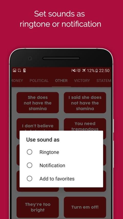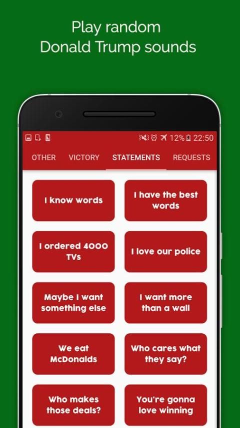 This soundboard contains more than 300 of Donald Trumps popular phrases. A must have for every fan or hater of Donald Trump.