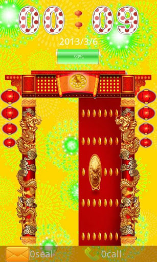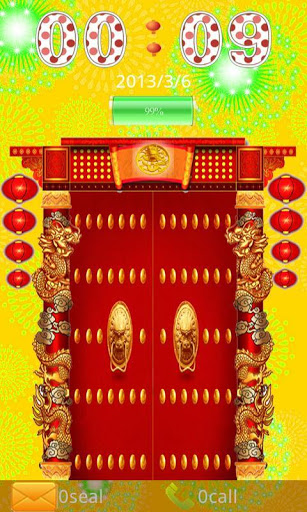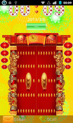 Open the door to unlock the screen or drag shining icon to unlock the screen. This free app Door Drag Screen Unlock supplies us with two ways to unlock the screen here for free. Come to try out this new screen locker here.=MAIN FEATURES=Full of Festival joyous elementsSimple design and UIEasy to use in daily lifeQuick access to phone or contactsA notifier of messages or callsShow us battery, date and timeTotally free for Android=ABOUT THE THEME+The background of this app is full of festival joyous elements.This free app Door Drag Screen Unlock may contain red lantern, dragon pictures and fireworks.Filled with such a red traditional chinese festival cultures, this free app can bring us a lot of joy.=HOW TO SET THIS LOCKER=Open the software in setting page.Sound depends on your situation to open or not.More introductions could be accessible in about button.=HOW TO UNLOCK THE SCREEN=1. Press power key to activate the screen at first.2. - We can choose to open the left and right door in turns to unlock the door.-Also we could adopt another unlock way, which is that we should press the shining sign on the top and drag it into left contacts shortcut or phone shortcut.This free app Door Drag Screen Unlock is a simple app to unlock the screen. We can unlock the screen by simply open the door or unlock to get calling/contacts shortcuts by dragging the shining sign.==============ATTENTION==============1. THIS APP MAY USE NOTIFICATION ADS OR ICON ADS,W HICH ALLOWS THAT THIS APP REMAINS TO BE AVAILABLE FOR FREE.2. WELCOM YOUR COMMENTS AND 5 STARS. PLEASE CONTACT THE SUPPORT email FOR REPORTING BUGS OR PROBLEMS TO FIX. ======================================A festival could be usually a happy, fun event, usually and ordinarily staged by a local community which may center on and celebrate some unique aspect of that community and the Festival.Among many religions, a feast could be a set of celebrations in honor of God or gods. A feast and a festival coule be historically interchangeable.