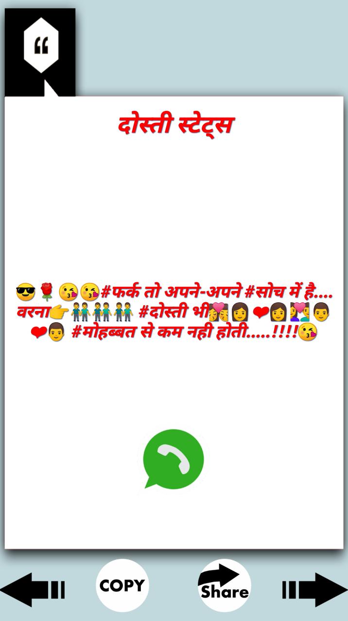 Dosti Status 2020 new daily updated new statusin hindi font, new hindi status, new hindi jokes and sms in romantic messages.