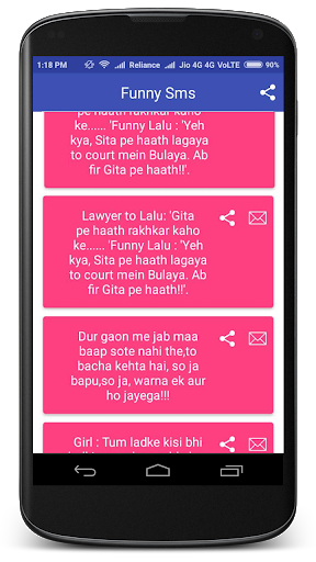 Variety of jokes,Complete Offline & FREE collections in different-different Categories !! collection of latest text messages, forwards, quotes & top jokes in one app for android phones!!