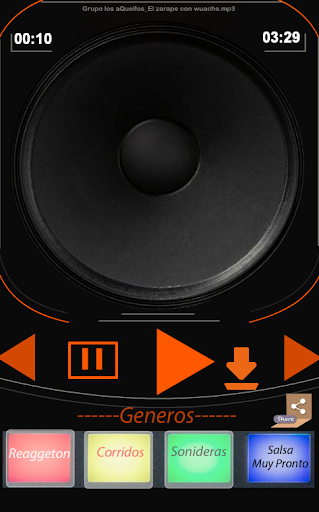 The cumbias sonideras and the songs by Reaggeton and Corridos are reproduced individually by genre to be downloaded in order according to your taste.