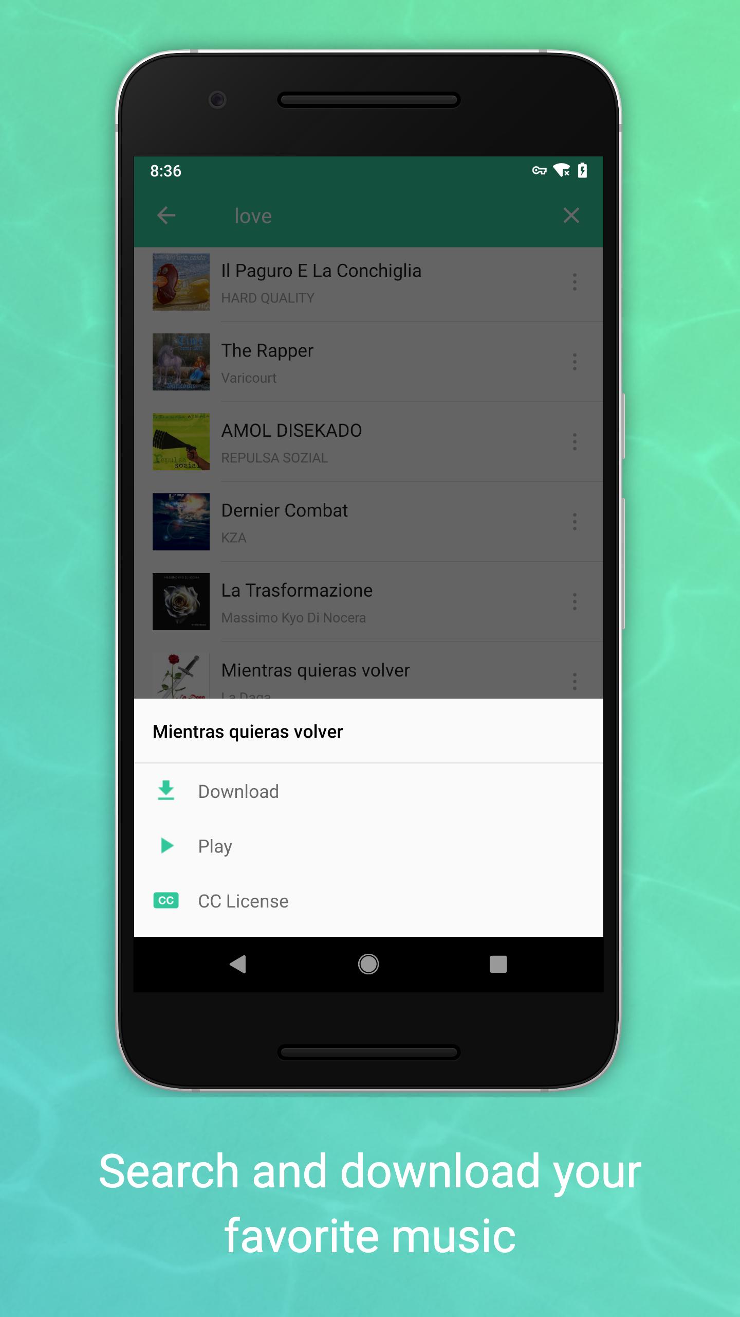 ⚠️ All music available is under Creative Commons License and license links are always available to app users.
