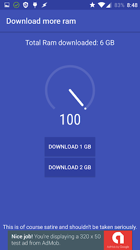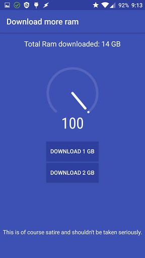 This mobile application is a play on the "Download more ram" prank phrase people often use in the form of a game.