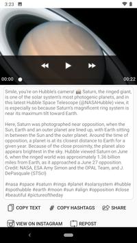 The app has the option to copy the text, copy hashtags and repost. It also supports Instagram albums.