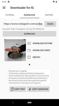 This app enables you to download public images and videos from IGTV and Instagram social networks, by simply pasting the URL of the post. Once the download is complete the videos and photos will be saved on your device and you will be able to view them offline at anytime.