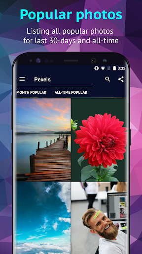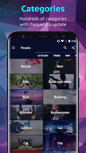 - List photo into hundreds of categories: vintage, car, nature, art, beach, fitness, mobile, wallpaper, rain, sea, food, etc.