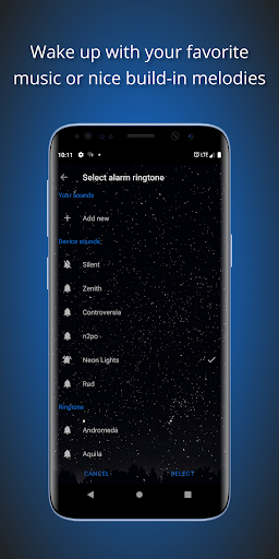Wake up with your favorite music or nice build in melodies.