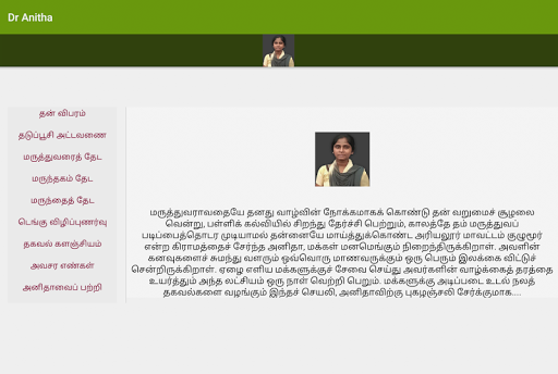 Provides basic health information, immunization schedule, emergency medical service contact numbers, doctor search, medicine search for the residents of Tamilnadu
