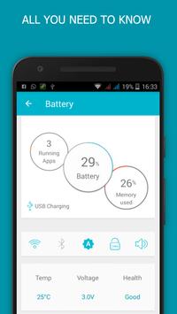 Keep track of memory (RAM), storage space and CPU/battery temperature.