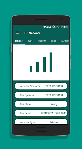 Dr Network monitors your mobile network's signal strength and notifies you when you experience signal loss. It also provides you with detailed Mobile, Wi-Fi, System, Root & Battery information.