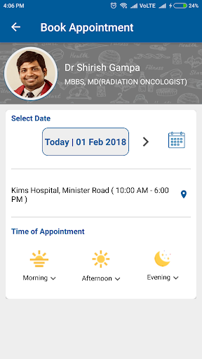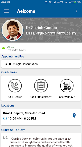 Using this application, you can book & manage slot based appointments with me, get timely health reminders and also chat with me about your health reports.