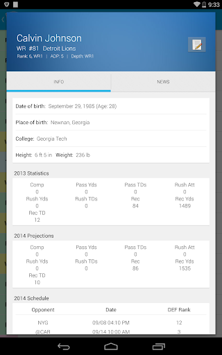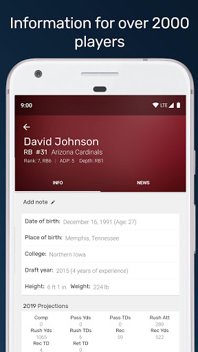 You can also have multiple drafts for each league. As you draft you can mark players as drafted or interested. Any progress you make gets automatically saved so you can pick up where you left off. Finally, view player profiles including info, stats, and player news.