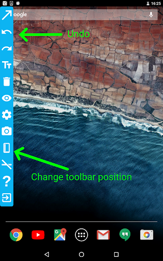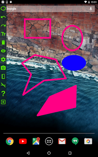 With Draw On Screen Free, you can draw anywhere or make text notes on anywhere of the screen(even over other apps), take screenshots(Android 5.0 required for take screenshots).