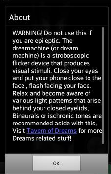 A dreamachine may be dangerous for people with photosensitive epilepsy or other nervous disorders.