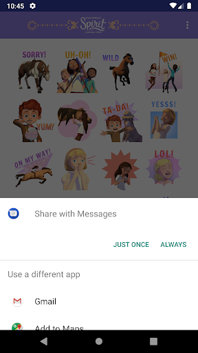 These cute images of your favorite Spirit Riding Free characters (like Lucky, Abigail and Pru) make it even more fun to keep in touch. Tell your BFFs how you’re doing. Let them know you’re on your way. Or just say thank you. These dynamic stickers leave emojis in the dust. Also works in WhatsApp!