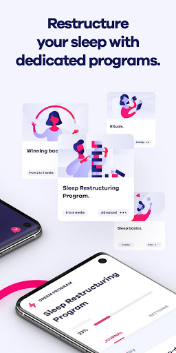• Sleep Restructuring- our most advanced program for people who often find it hard to fall asleep or wake up several times during the night. Through a series of sleep consolidation exercises, and to-do lists, Sleep Restructuring helps you achieve a good “sleep efficiency” ratio between the time spent in bed and time spent asleep.
