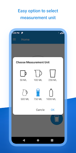 - You can set your Daily target, Choose the measurement unit like 50ml, 100ml upto 1000ml measurement unit.