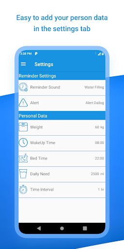 - You can set the interval to remind drinking water