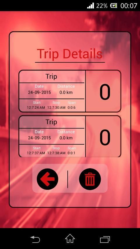 ★ Trip details are saved which includes: Date, Distance, Start time, Stop time ,Duration and Number of faults.