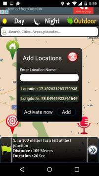 ► Route via Search box: Enter city name of where you want to go then “add location” popup will appear now press “activate now” button to get route navigation path. After that select your choice of travel mode like car, Bicycle, walking.