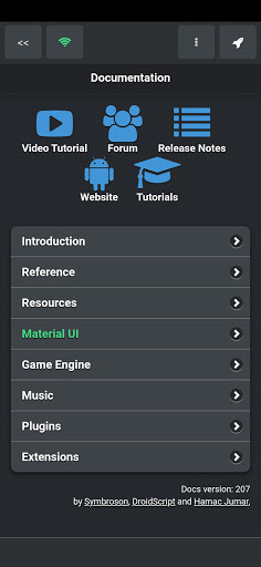 DroidScript uses Android's built-in Chrome V8 JavaScript engine which is constantly updated and improved by Google and keeps up-to-date with modern internet standards.