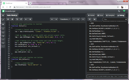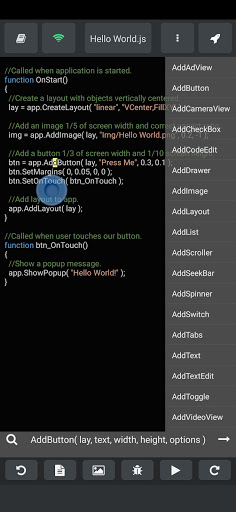 Easily and quickly write apps for your Phone, Tablet or Chromebook using industry standard JavaScript. Edit your code using our browser based WiFi editor, or just edit code directly on your device using the built-in code editor. Now you can write apps anywhere!