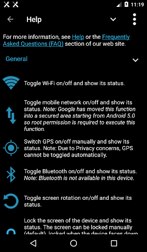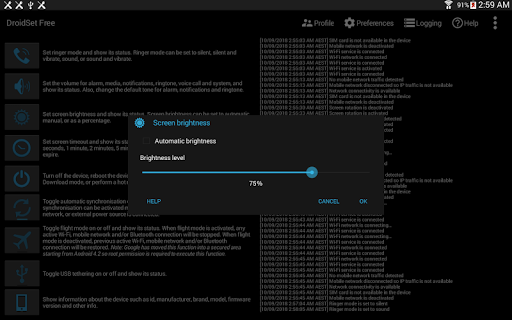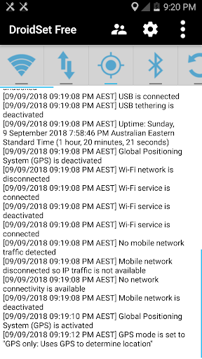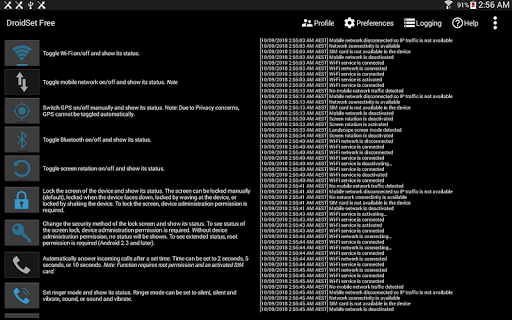 DroidSet allows you to manage settings on Android devices by providing quick toggling functionality. These functionality allow you to enable or disable Wi-Fi, mobile network, Bluetooth and more at a touch of a button. When a functionality is activated, you'll be presented with some information regarding that functionality.