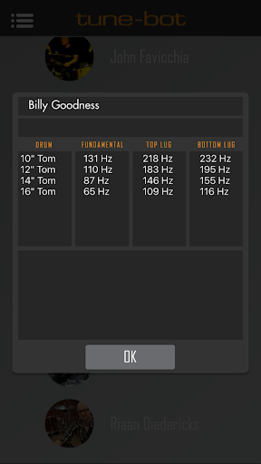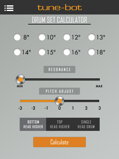 The tune-bot tuning calculator will help you determine the notes and frequencies to reach your perfect sound. Based on your drums and your personal preferences the tune-bot will provide recommended settings based on musical intervals. You can then use the tune-bot drum tuner to tune your drums to these exact settings. Also you can experiment with other tunings and try some of our “pro tunings” from the various tune-bot artists. After you’ve tuned your set to your liking you can save the pitches of all your drums to allow you to quickly re-tune to the same sound over and over again. No more guesswork!