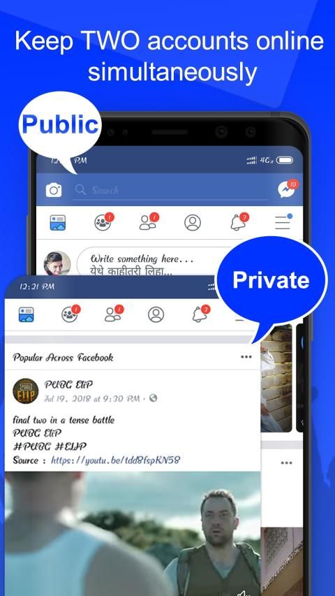 Now Dual Space 2019 - Clone Apps (Multiple Accounts) can perfectly solve your problem! Dual Space 2019 - Clone Apps (Multiple Accounts) is designed for users who log in 2 accounts/multi account of the same app on ONE PHONE. You can get dual WhatsApp & multi Facebook easily and protect privacy with app lock.