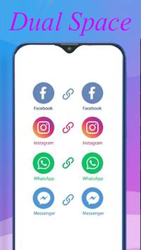 Dual Space 2019 Hidden App clone Space is the easiest app for Android that allows you to log into multiples WhatsApp, Facebook Messenger or any social network app accounts … on the same android device and at the same time!