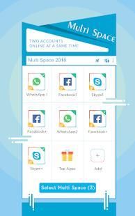 Parallel space: multiple account (dual space) app will help to manage your private account and public account of social media app like facebook, whatsapp, twitter, hike, Instagram, etc.