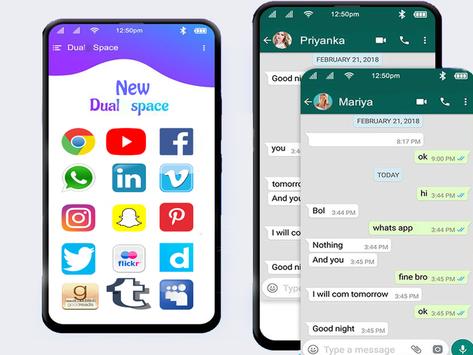 · Dual space New is the latest technology that can clone applications. We do not install more applications in your phone, so your phone will work very smoothly!